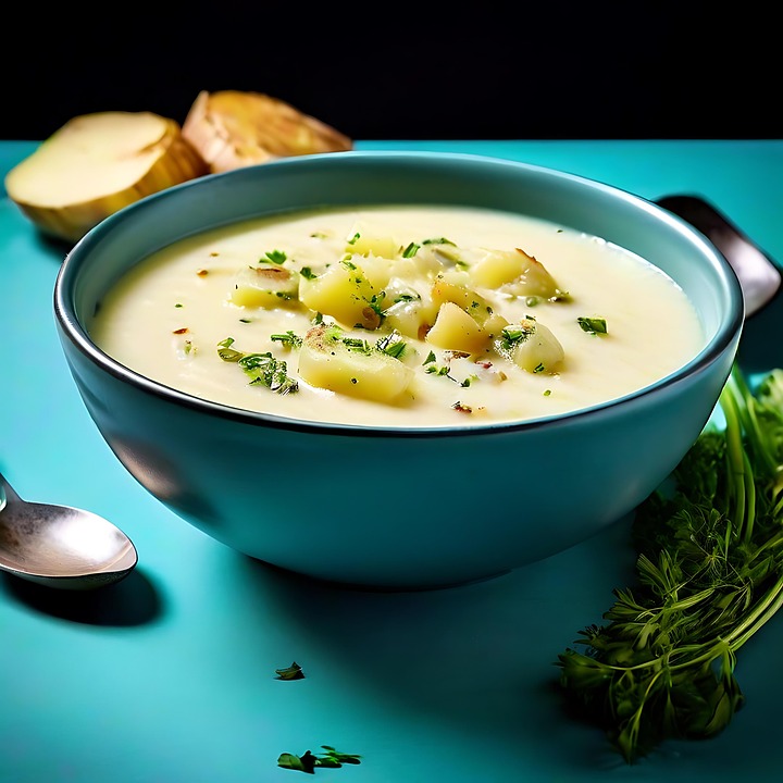 A mi cuisson ajouter les pommes épluchées et coupées en petits dés – Cuisson encore → 40 mn – Ajouter la crème – Réduire légèrement – Mettre au point